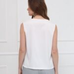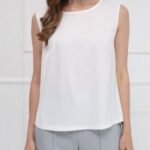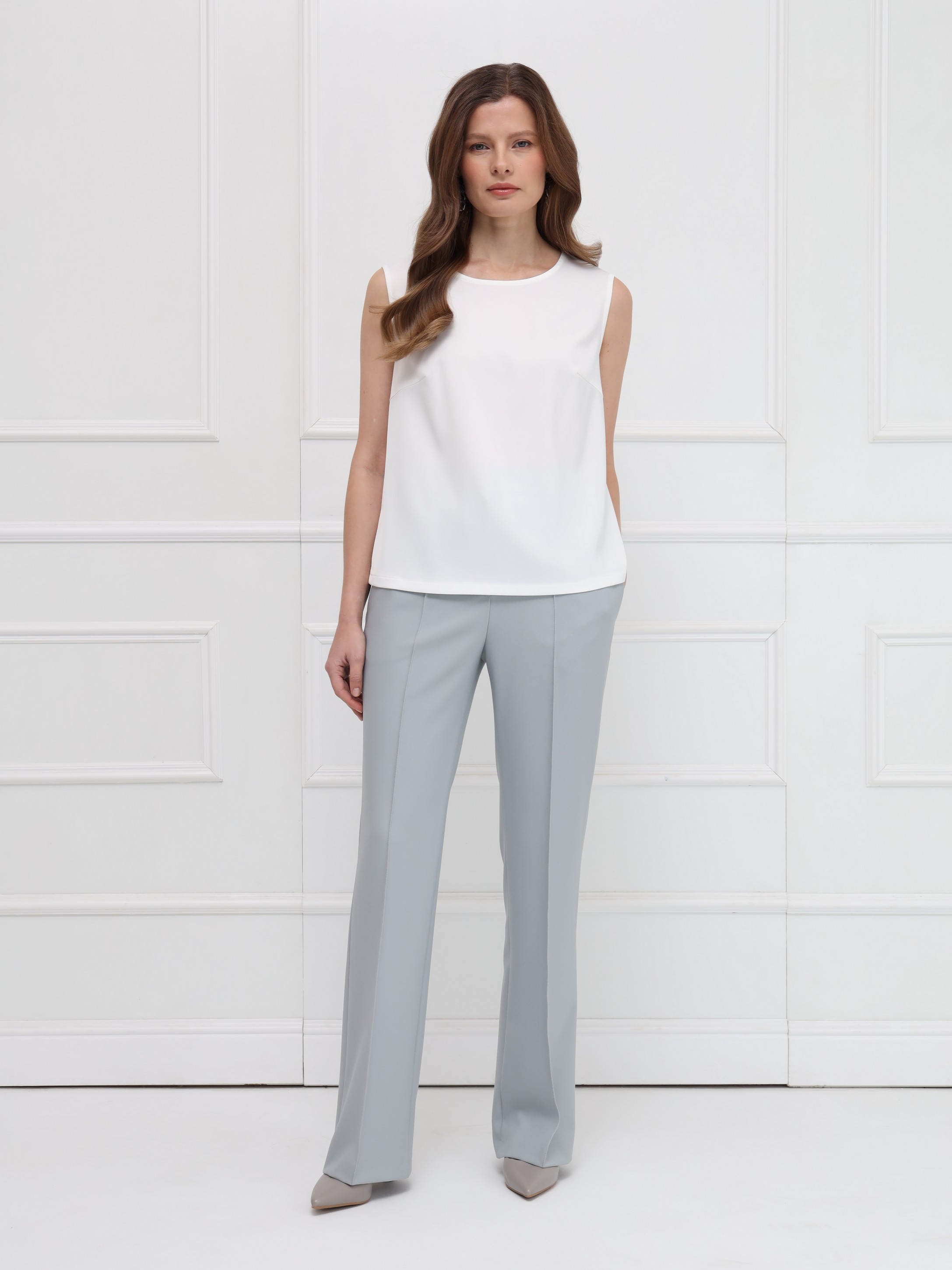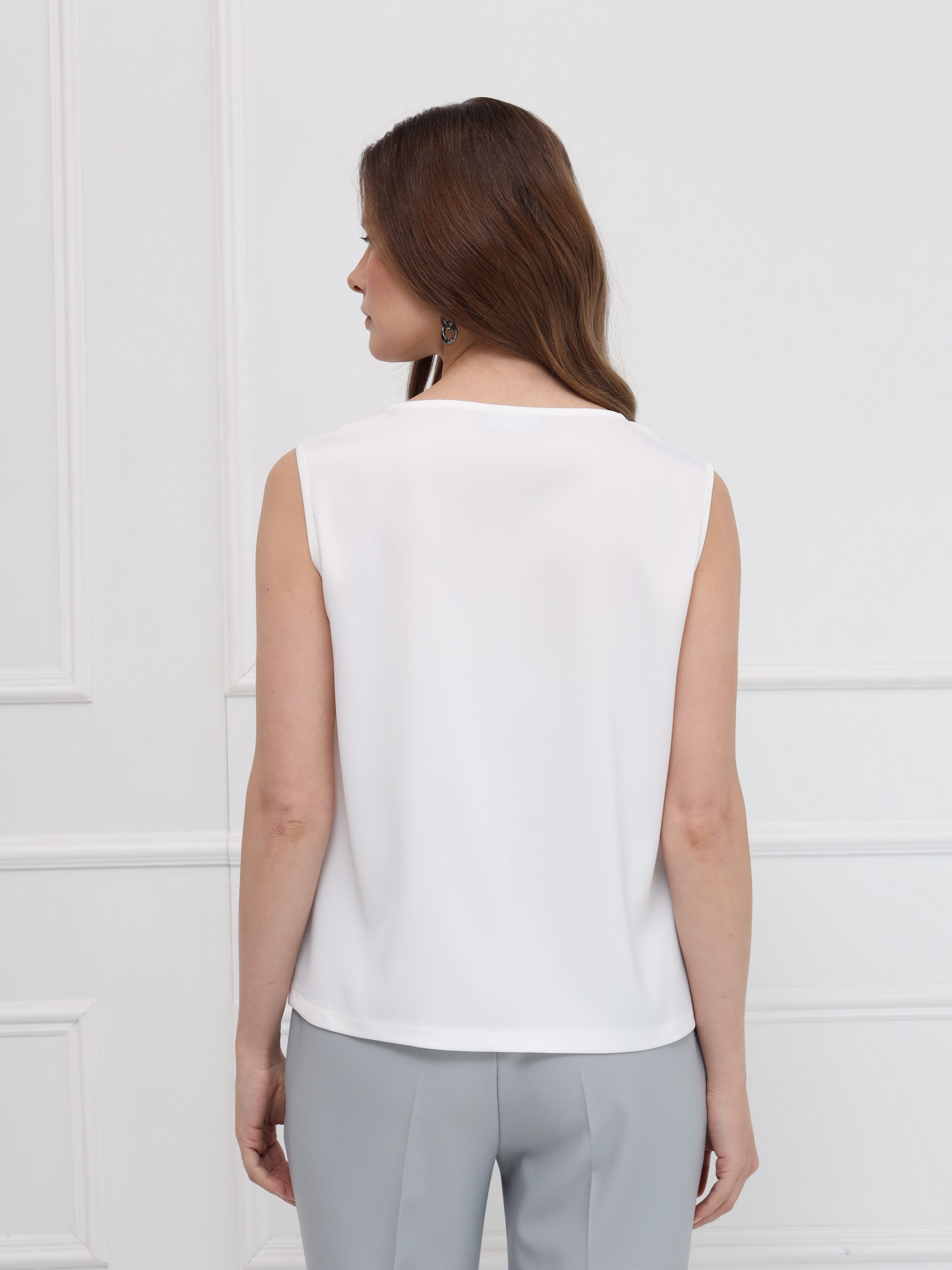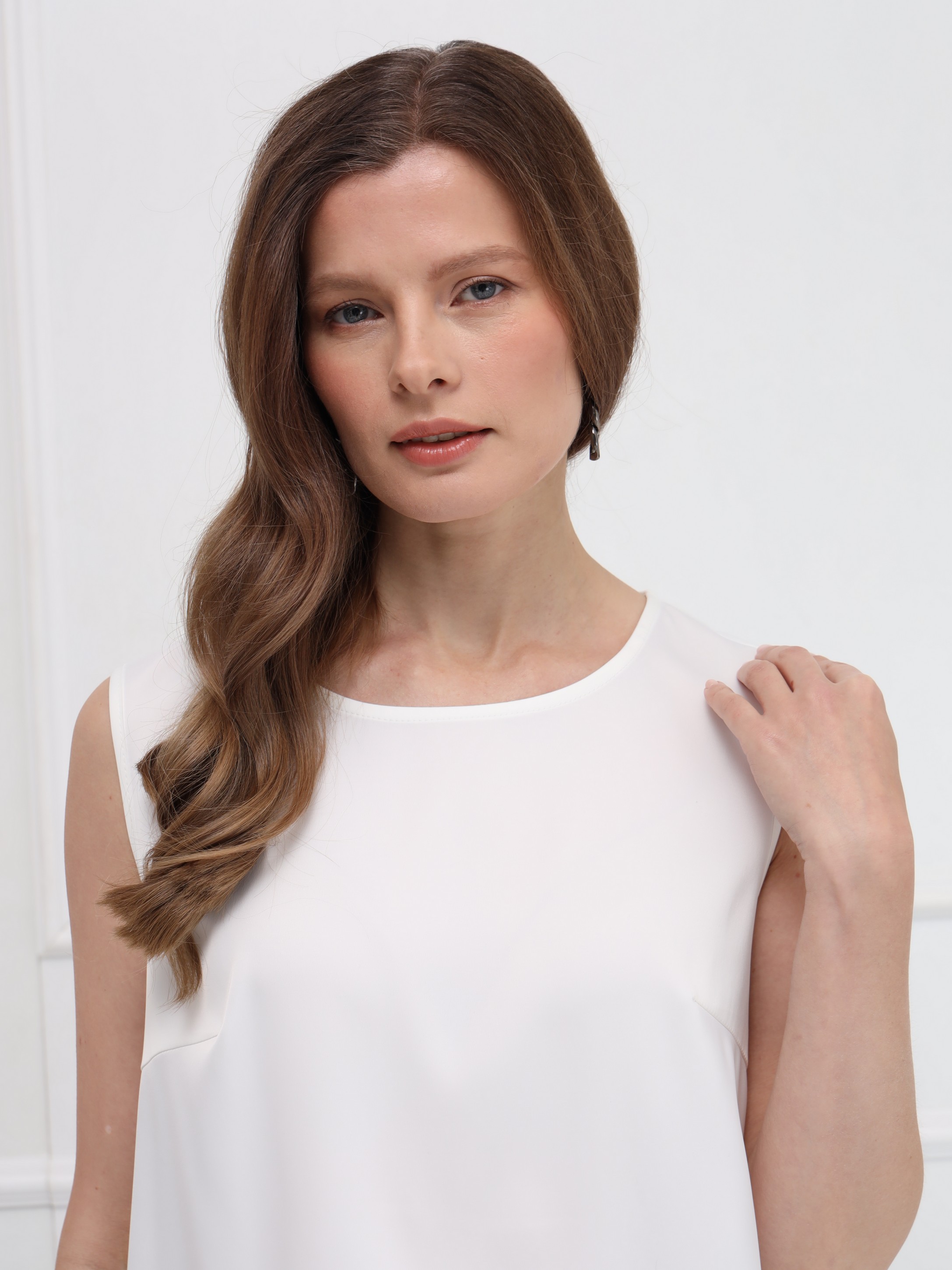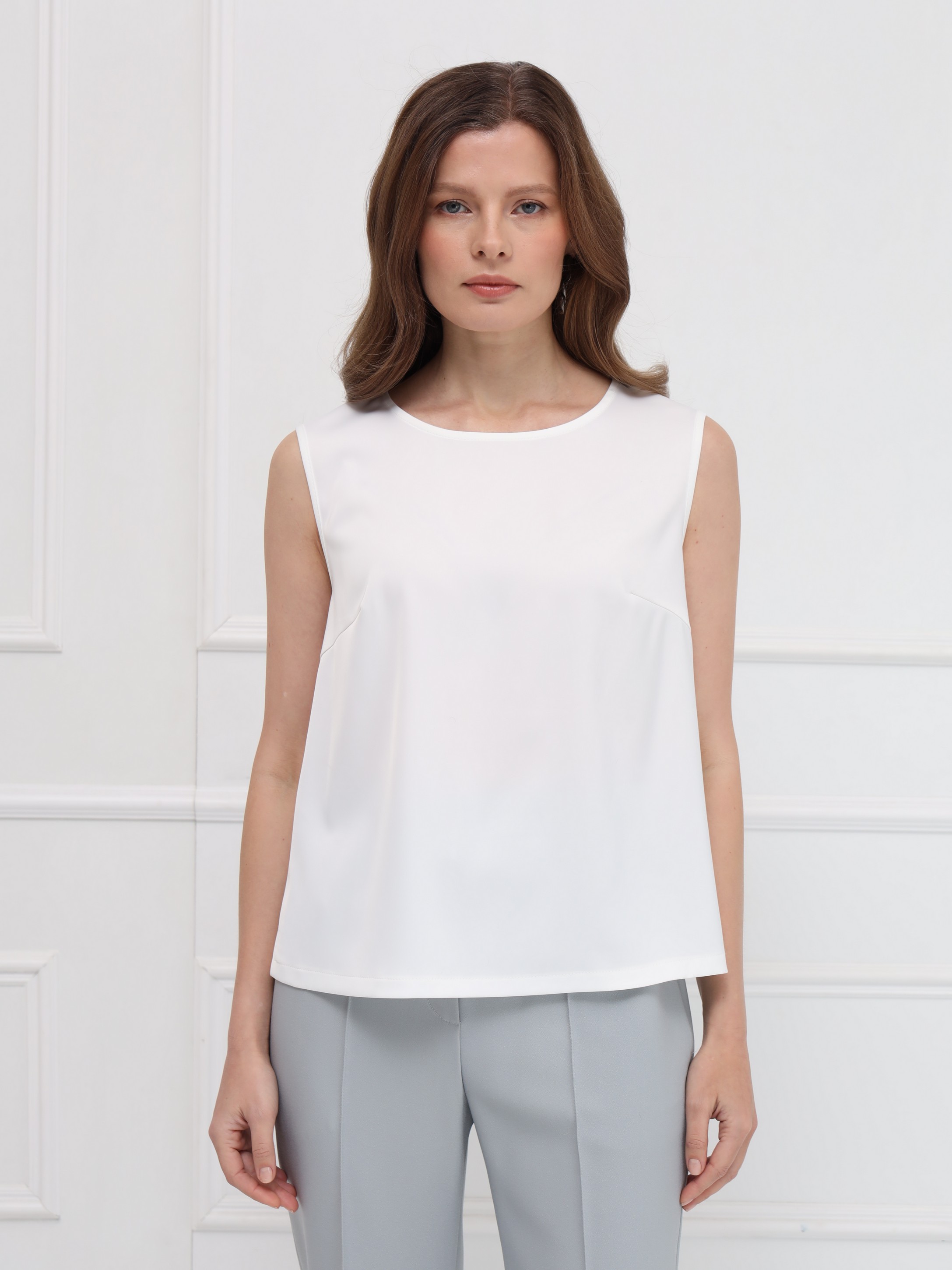 Топ из атласа без рукавов - лёгкая и элегантная база для продуманных образов. Прямой силуэт с круглой горловиной и небольшими боковыми разрезами обеспечивает комфорт и свободу движений. Модель идеально подходит для ношения под жакеты или как самостоятельный акцент в весенних ансамблях. На фото топ представлен с жакетом В-971 ЖЛД(В6) и брюками Б-2026 ЖЛД(В6).