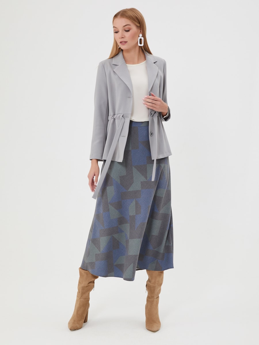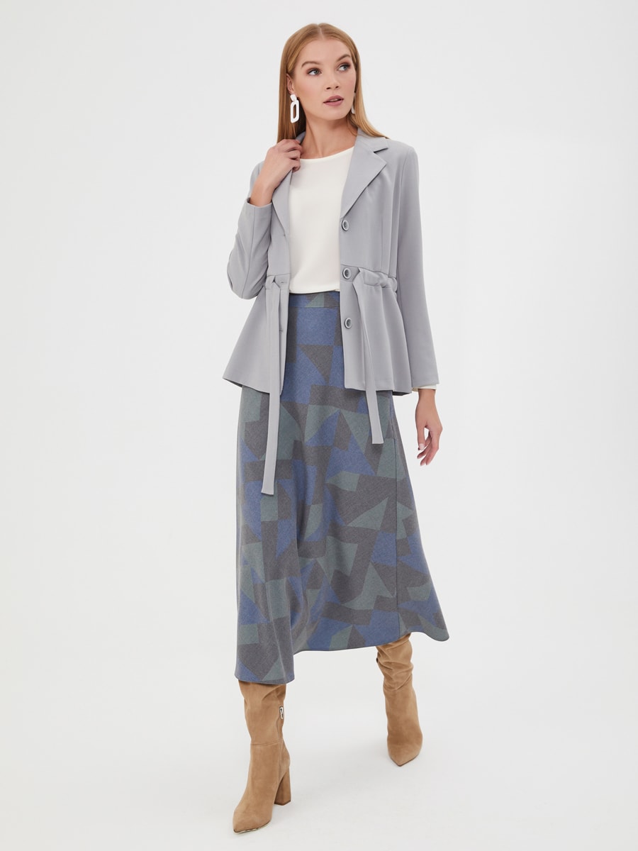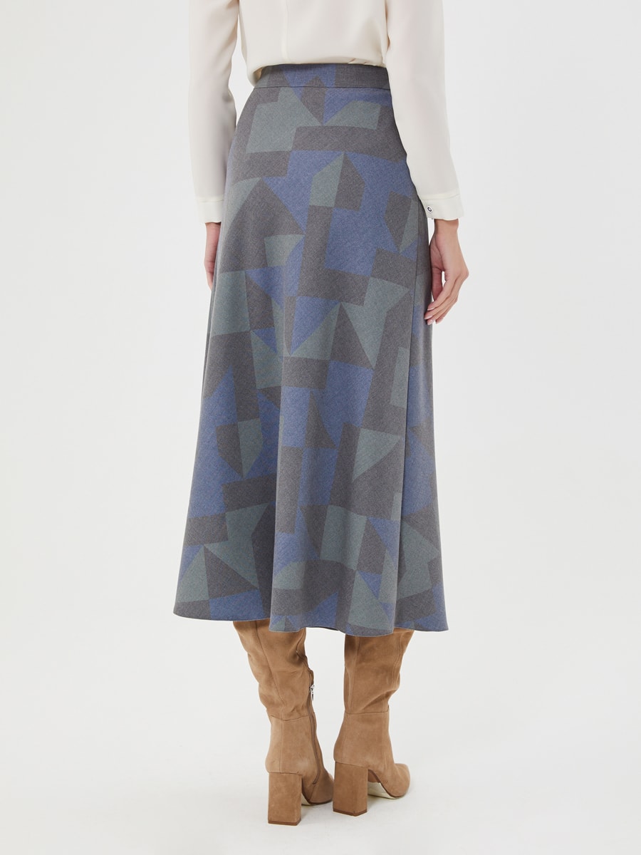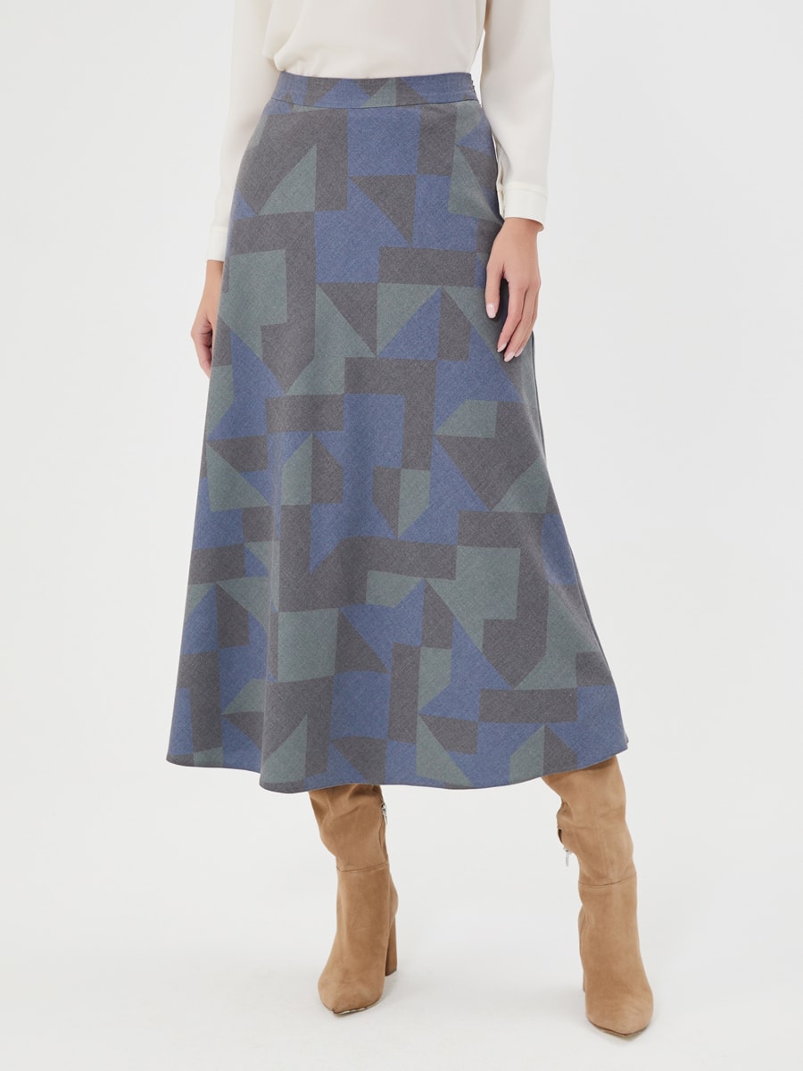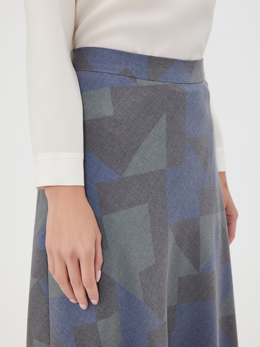 Описание: Юбка длины миди из мягкой ткани. Принт «геометрия». Палитра оттенков юбки позволяет носить ее с множеством топов и блузок.