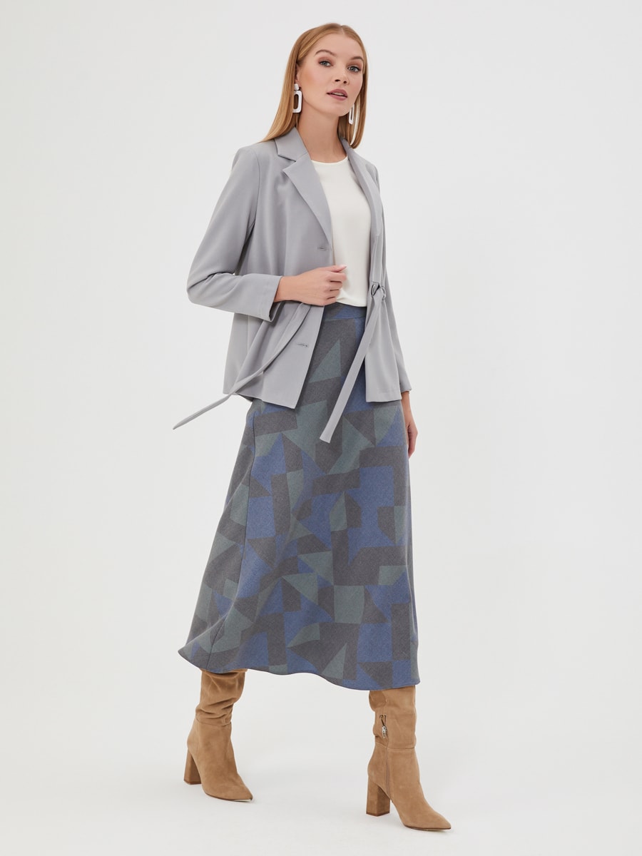 Описание: Юбка длины миди из мягкой ткани. Принт «геометрия». Палитра оттенков юбки позволяет носить ее с множеством топов и блузок.