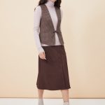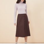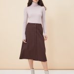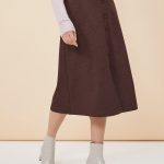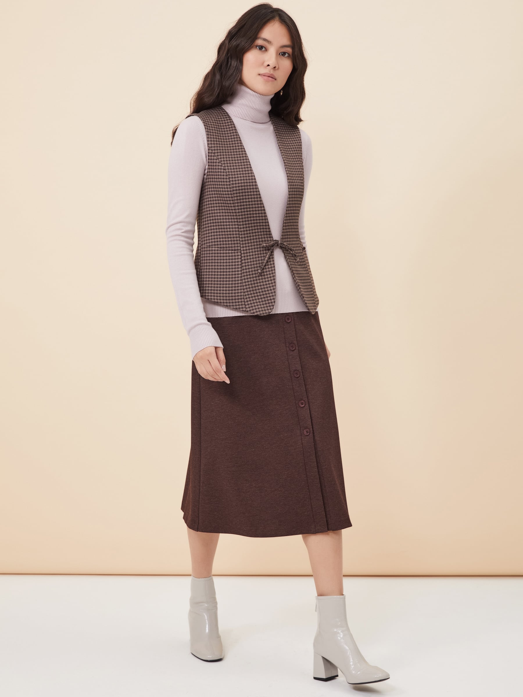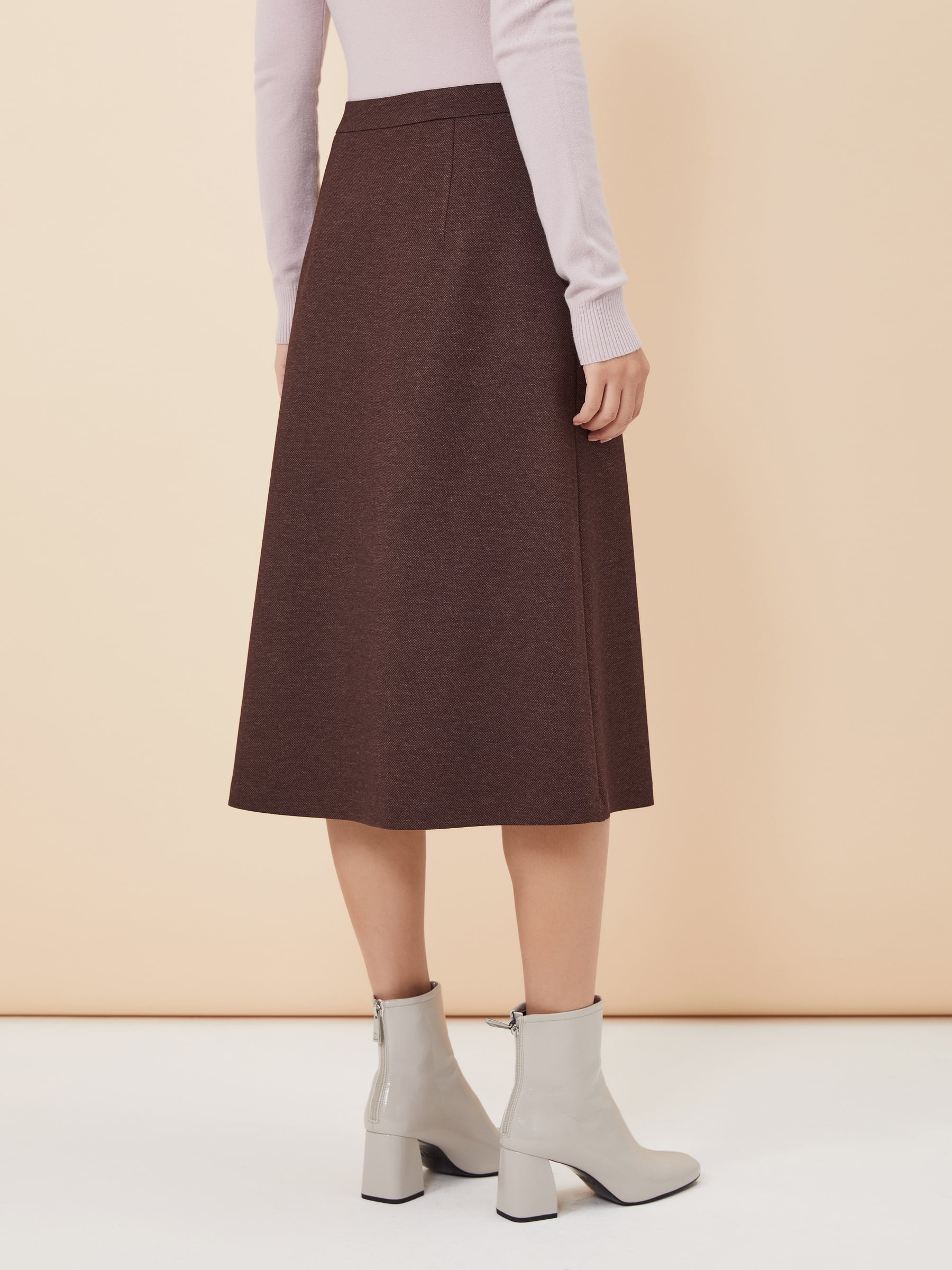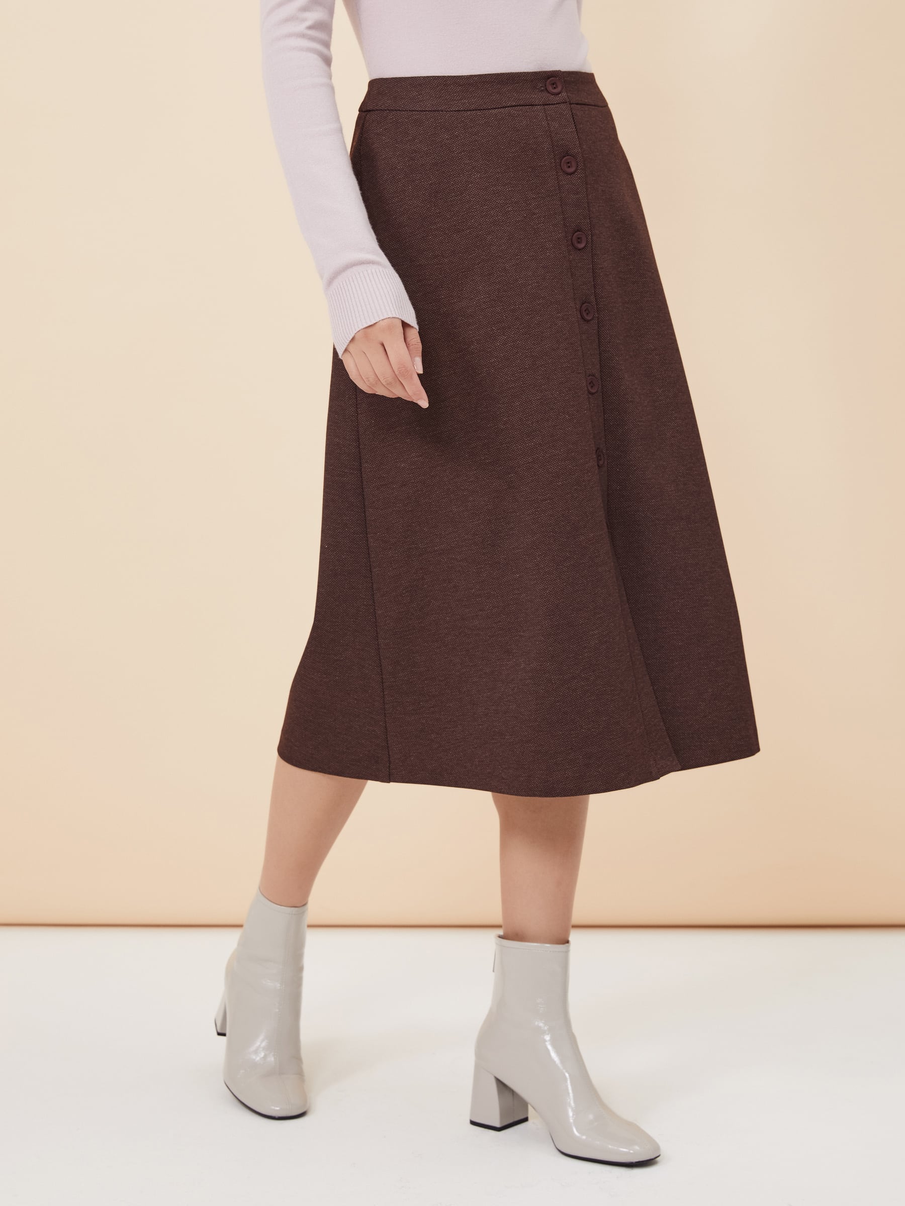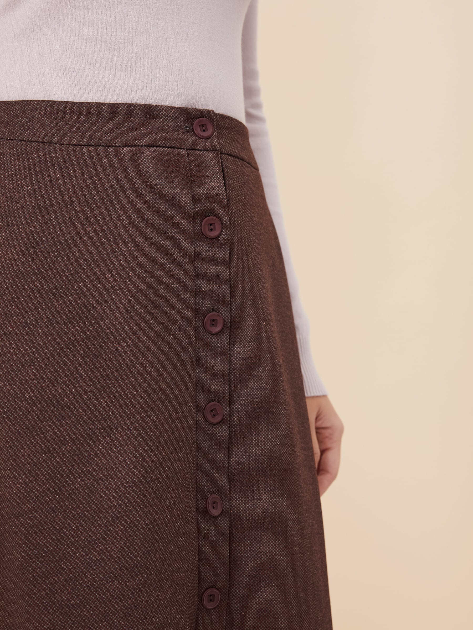 Юбка трапеция на пуговицах спереди , из трикотажного полотна, коричневого цвета.