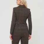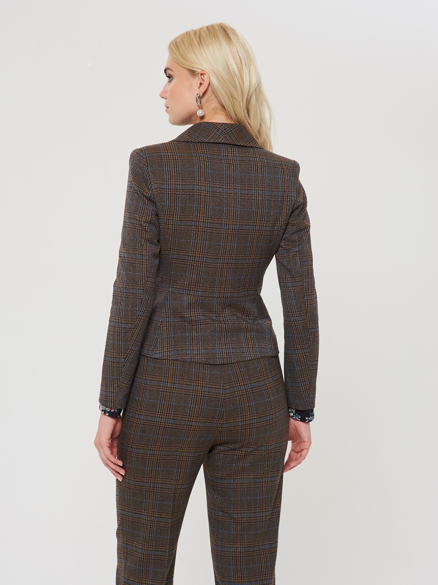 Укороченный приталенный клетчатый жакет на одну пуговицу с шалевым воротником. Этот утонченный жакет прекрасно сочетается с блузкой Д-915 НЕР2(О9) и брюками Б-802 ТФ(О9)