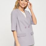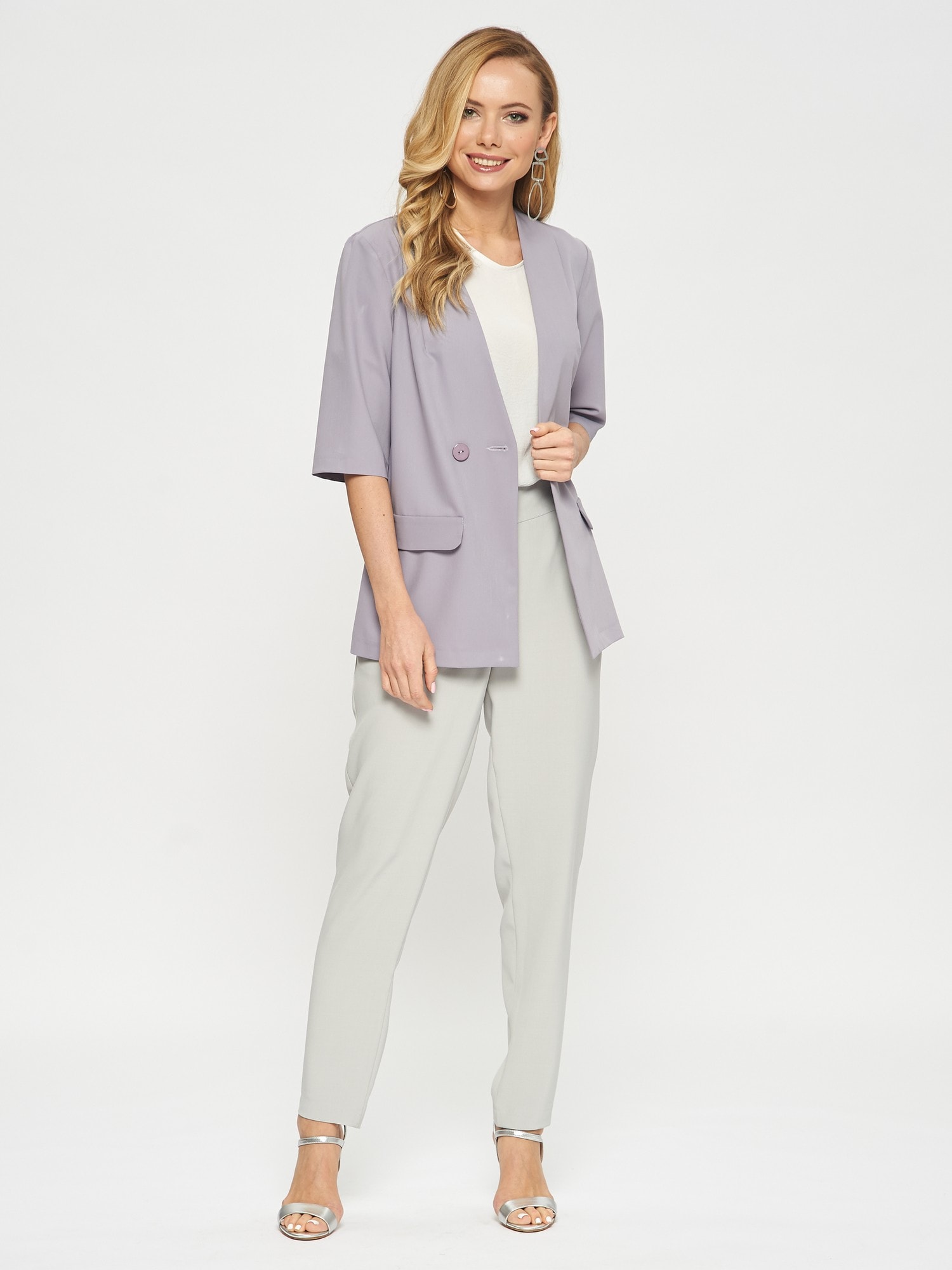 Двубортный жакет лилового цвета с укороченными рукавами. Идеальное решение для весны и лета. Легко впишется как в офисный, так и в повседневный гардероб. Дополните образ брюками Б-01 МШ(В20)