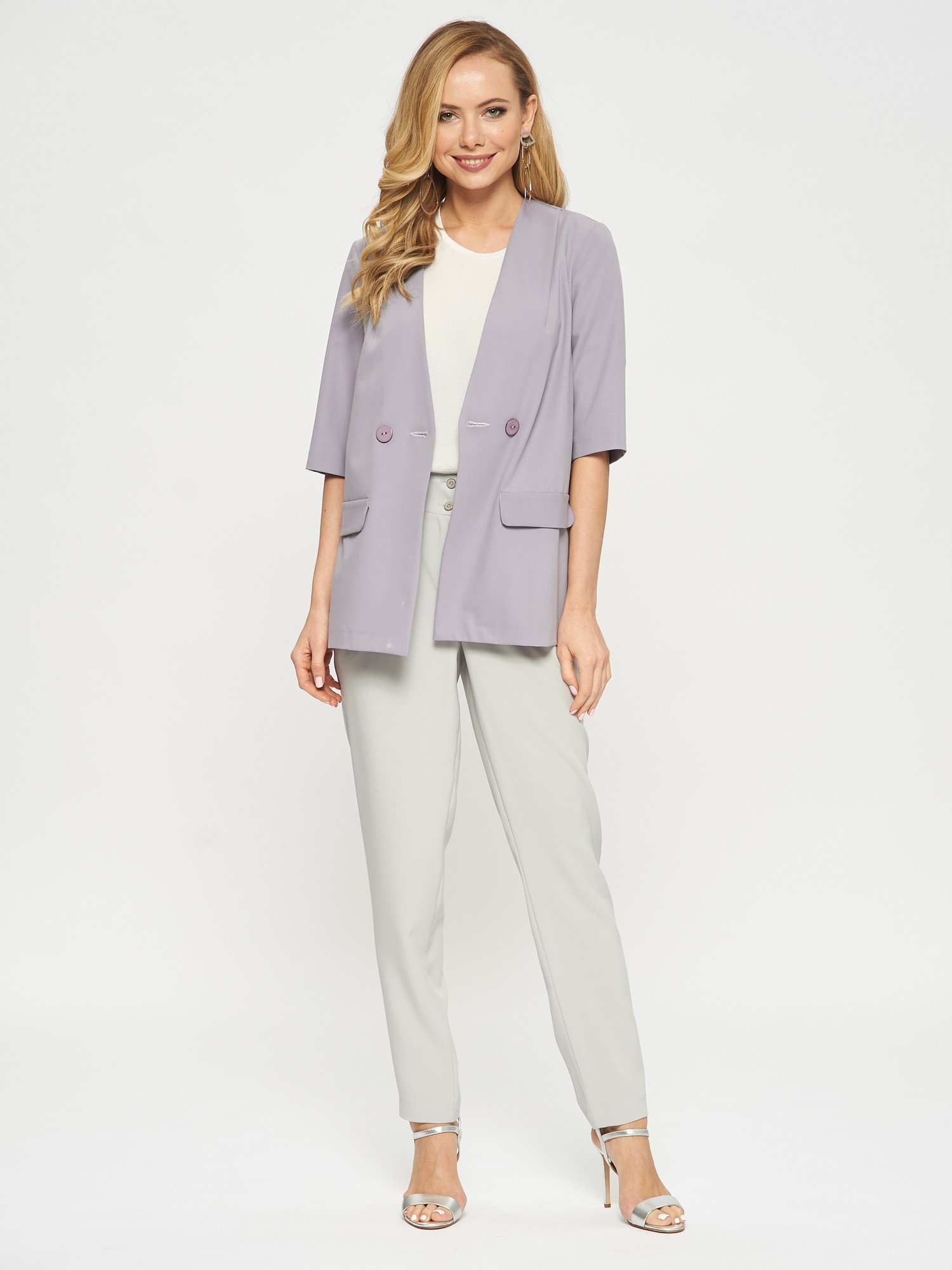 Двубортный жакет лилового цвета с укороченными рукавами. Идеальное решение для весны и лета. Легко впишется как в офисный, так и в повседневный гардероб. Дополните образ брюками Б-01 МШ(В20)