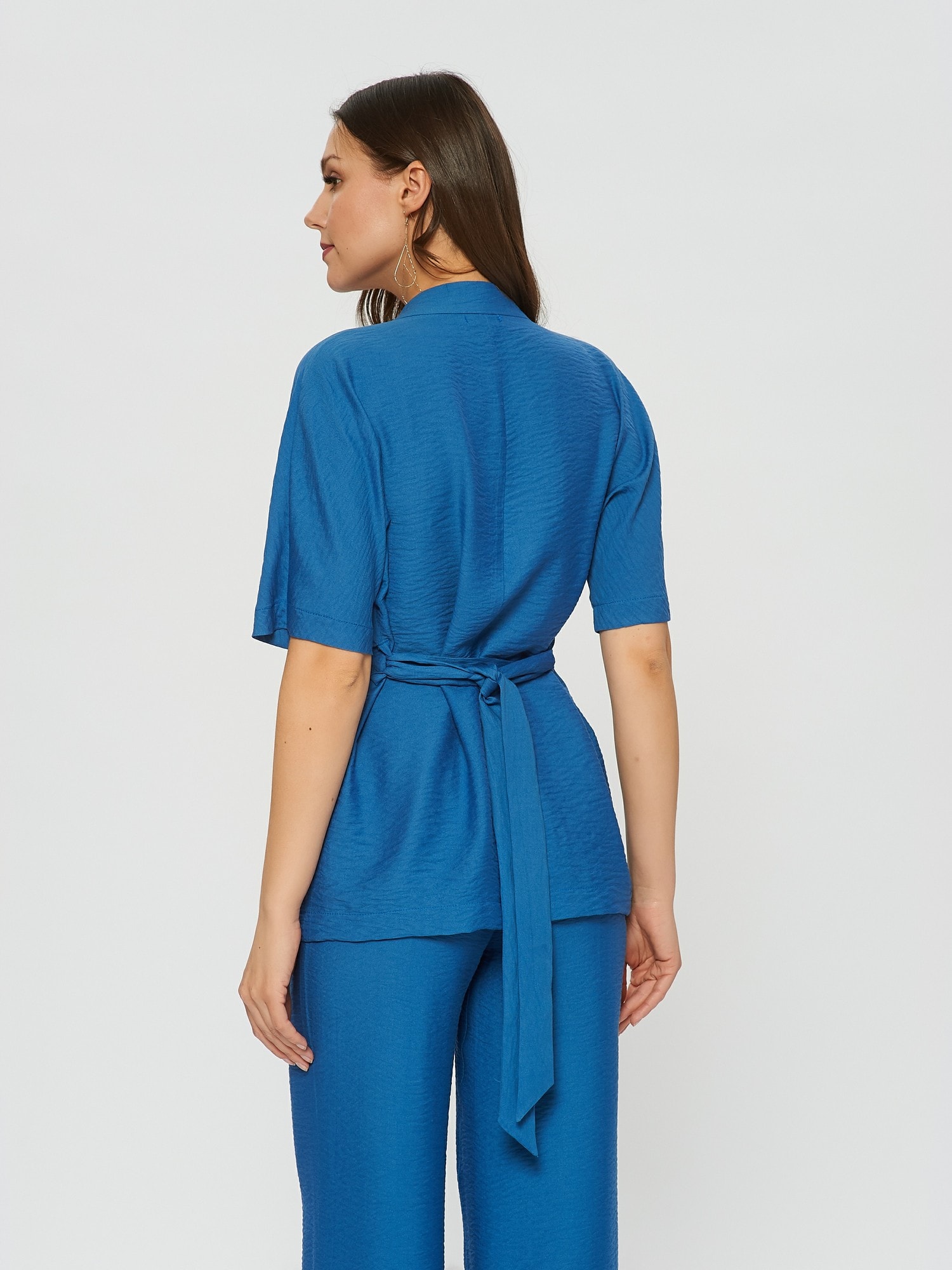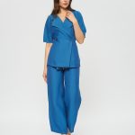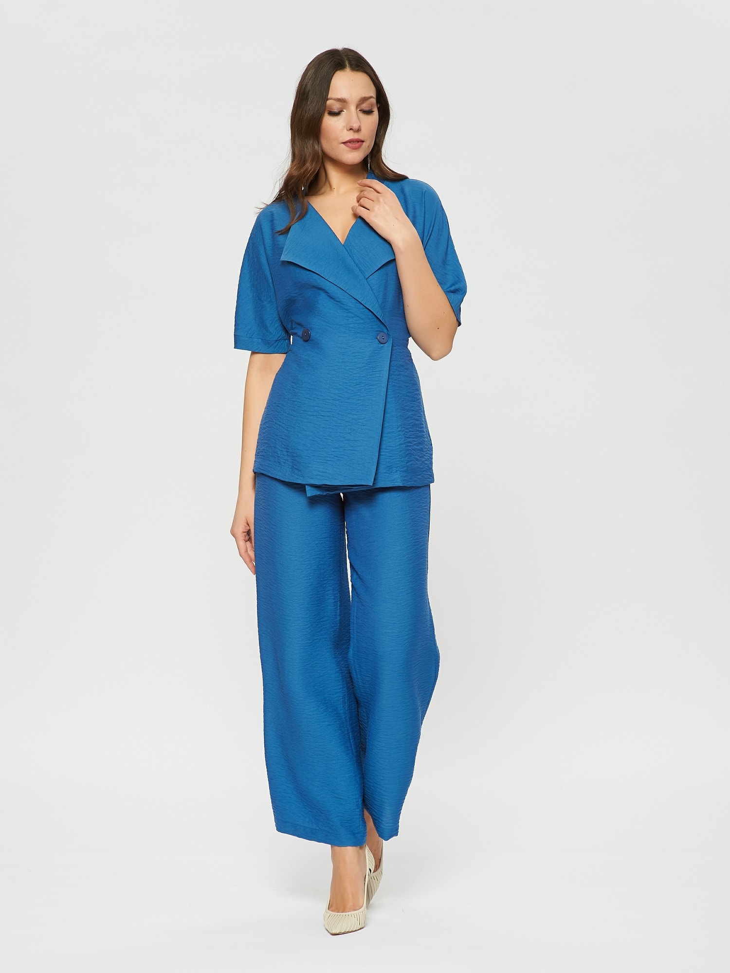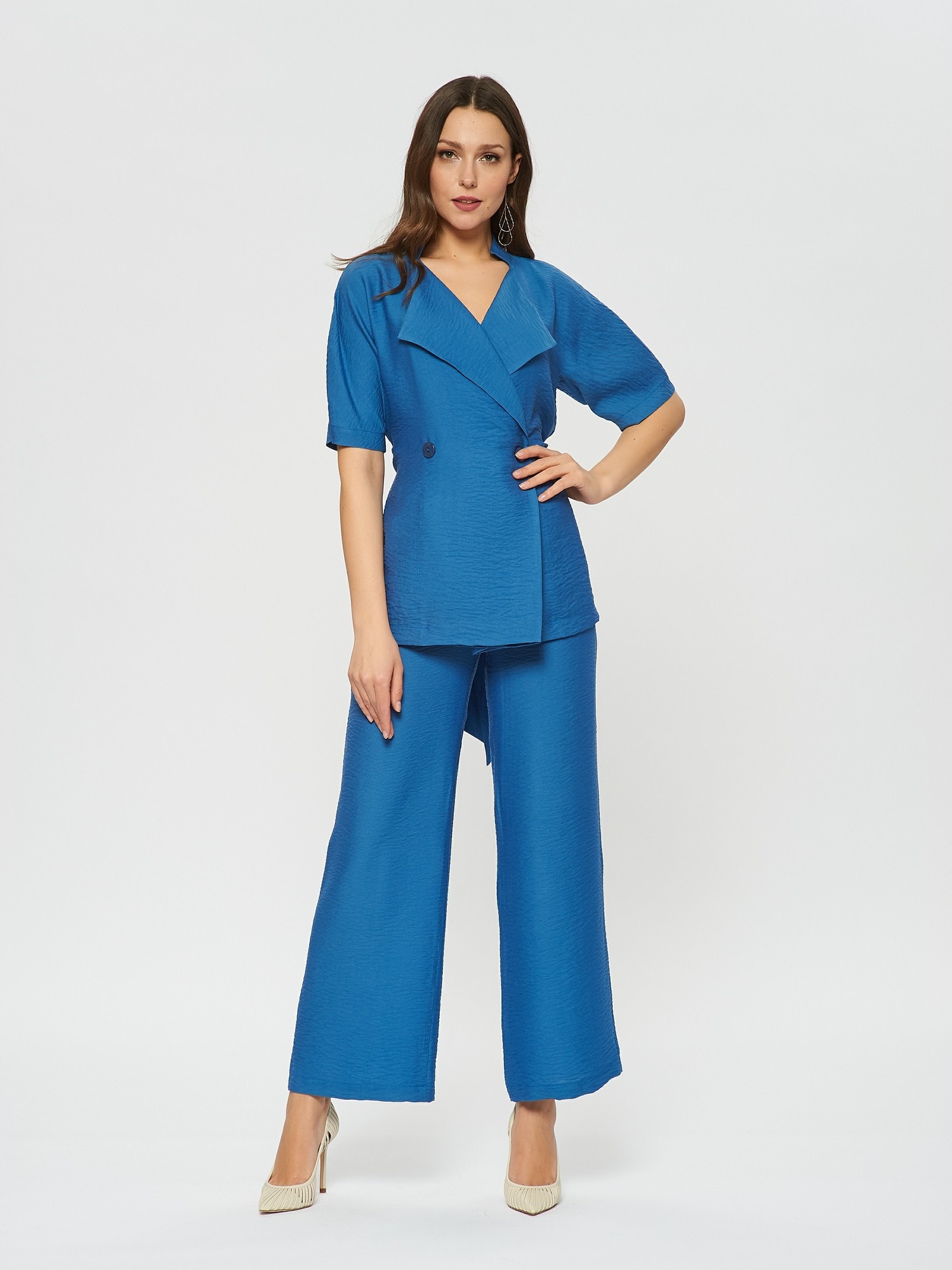Двубортный жакет. Пояс в комплекте. Выполнен из вискозной ткани в трендовом оттенке "классический синий". Дополните брюками Б-900 БРЮ(В20)