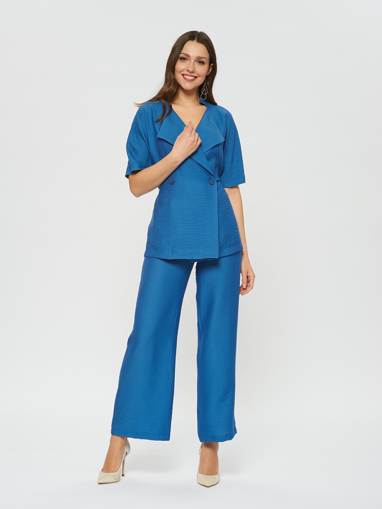 Двубортный жакет. Пояс в комплекте. Выполнен из вискозной ткани в трендовом оттенке "классический синий". Дополните брюками Б-900 БРЮ(В20)