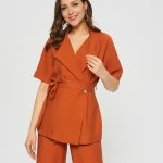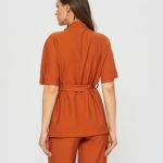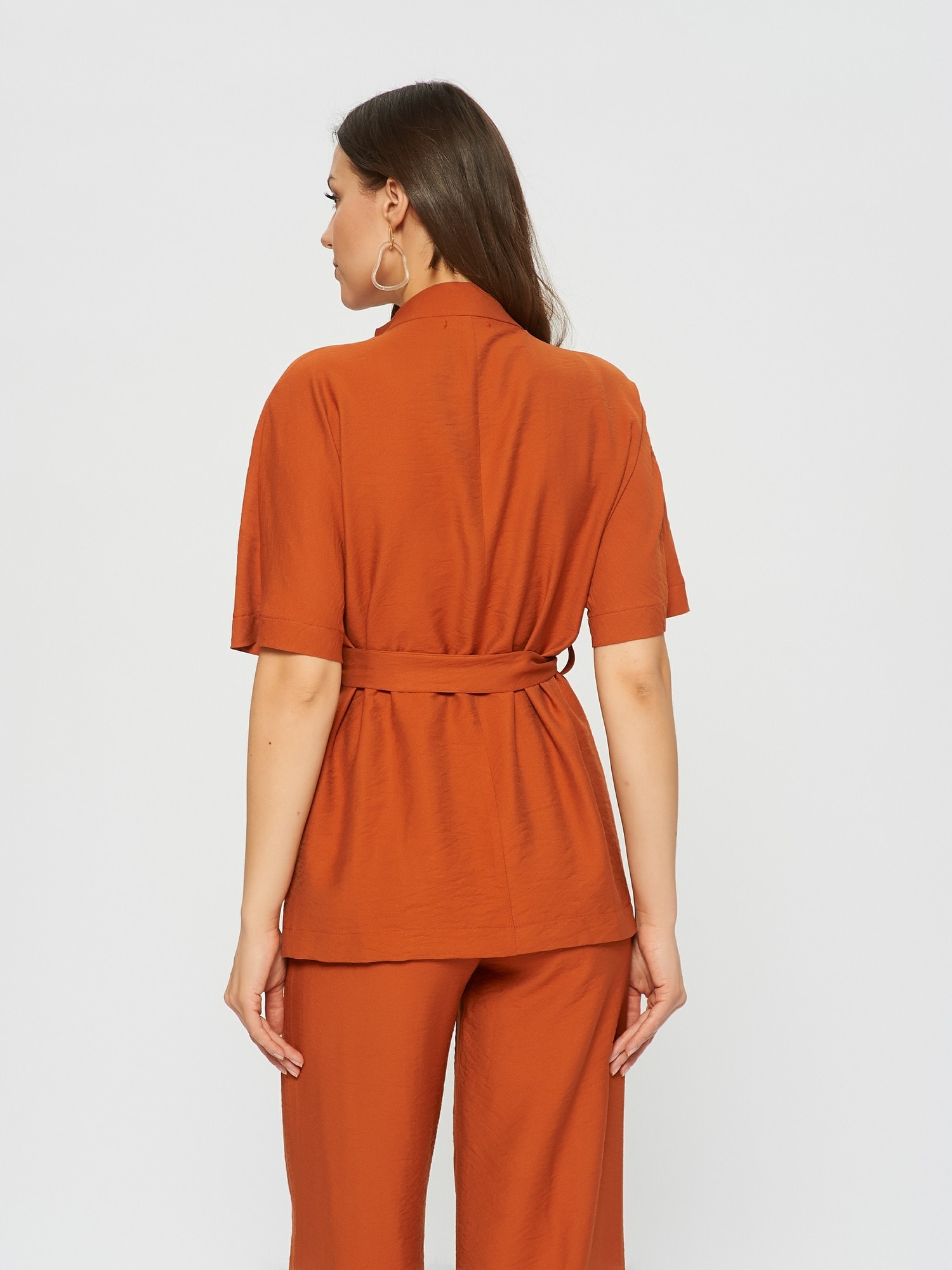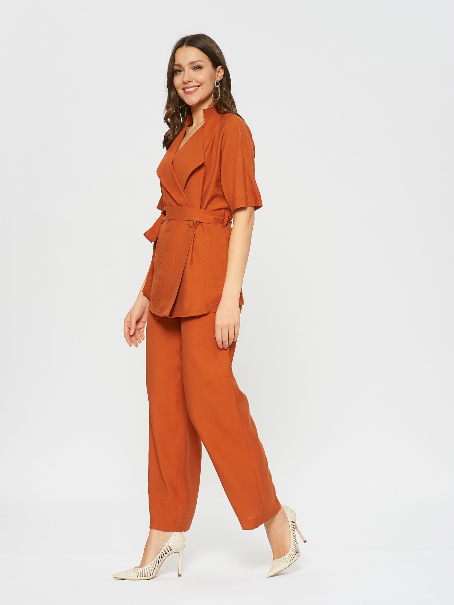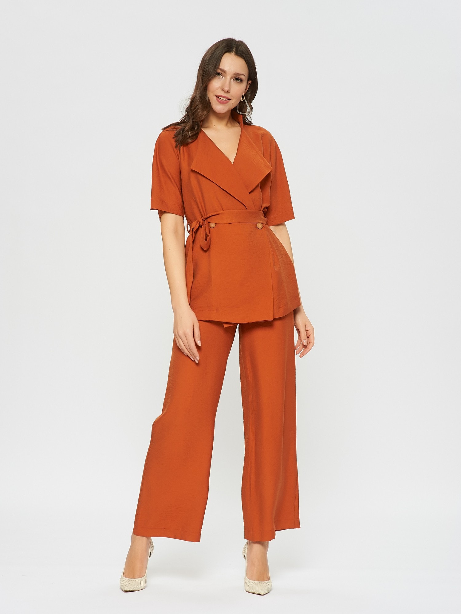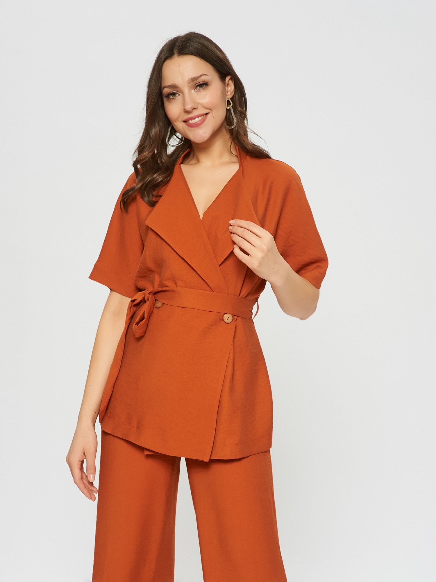 Двубортный жакет. Пояс в комплекте. Выполнен из вискозной ткани в трендовом оттенке "палочка корицы". Дополните брюками Б-900 ГЛИ(В20)