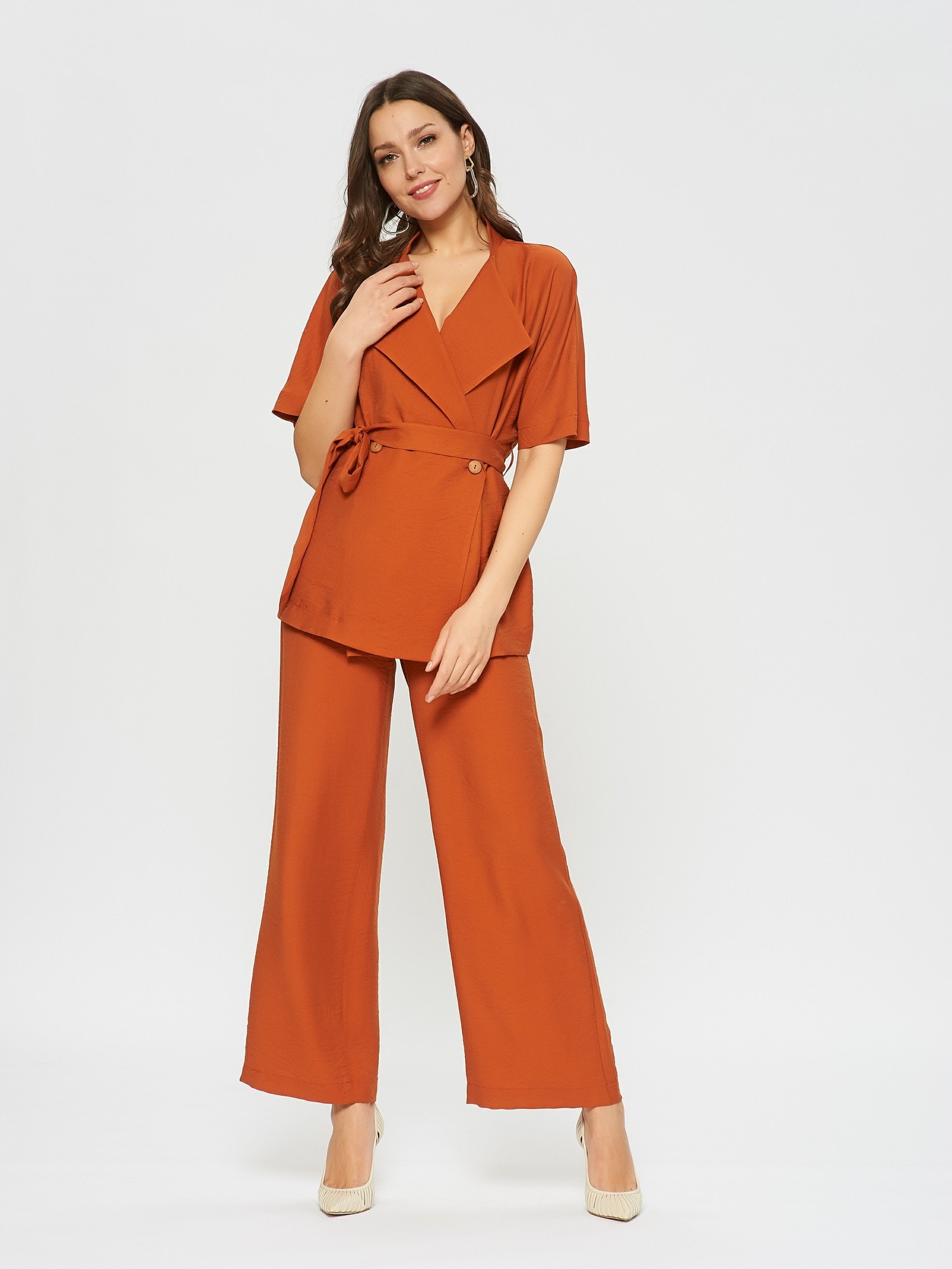 Двубортный жакет. Пояс в комплекте. Выполнен из вискозной ткани в трендовом оттенке "палочка корицы". Дополните брюками Б-900 ГЛИ(В20)