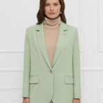 Жакет выполнен в приглушенном салатовом цвете -универсальный вариант для делового гардероба. Модель полуприлегающего силуэта, подчеркивающего фигуру, но сохраняющего комфорт. Застежка на одну пуговицу добавляет аккуратный акцент. Прорезные карманы с клапанами подчеркивают строгость образа. Жакет на подкладке, что обеспечивает дополнительную структуру и удобство в носке. Ткань держит форму и подходит для межсезонья. Эта модель легко сочетается с брюками и юбками базовых оттенков. На фото в паре Брюки Б-704 ОЛИ(О5).