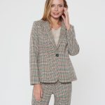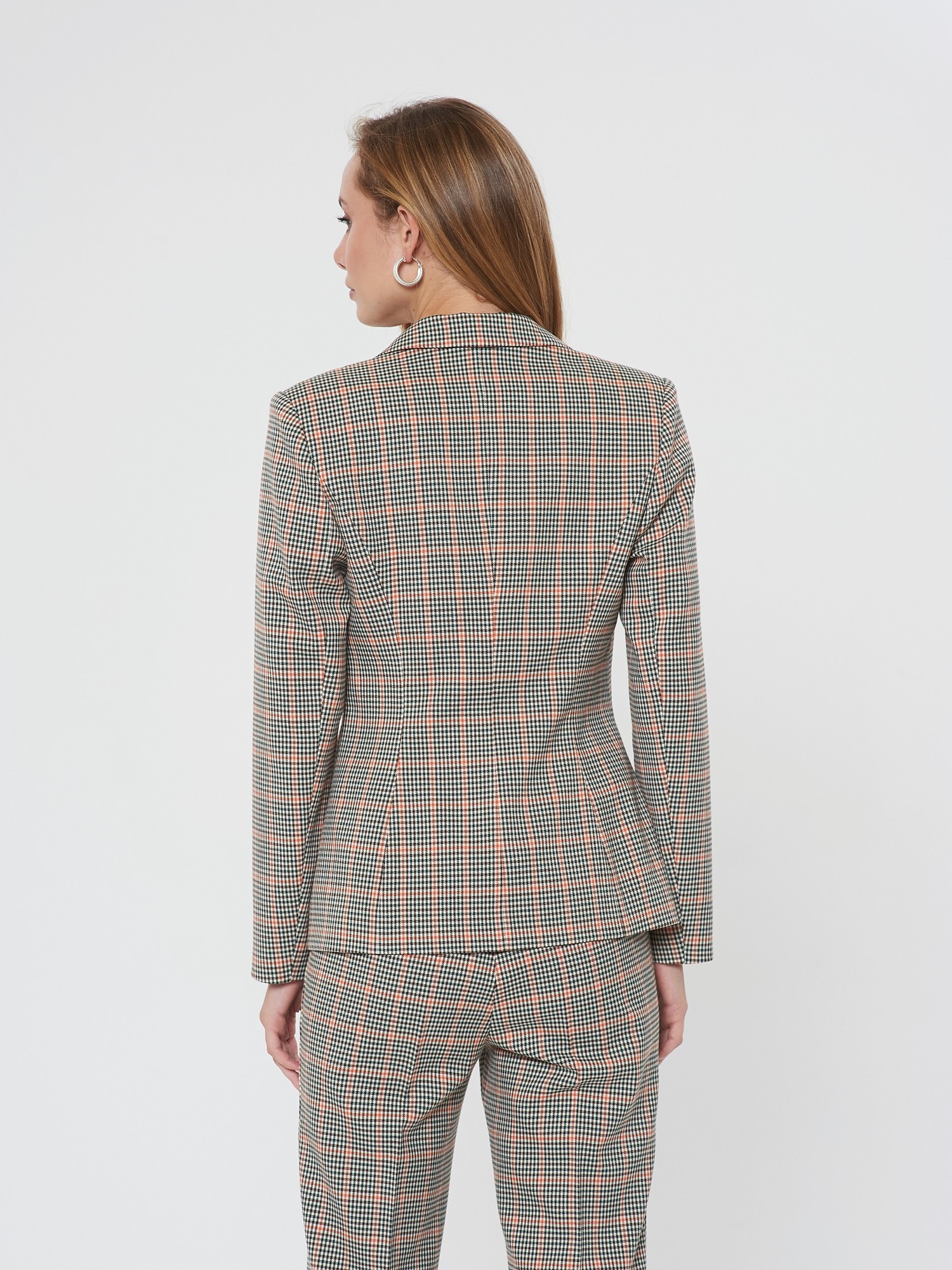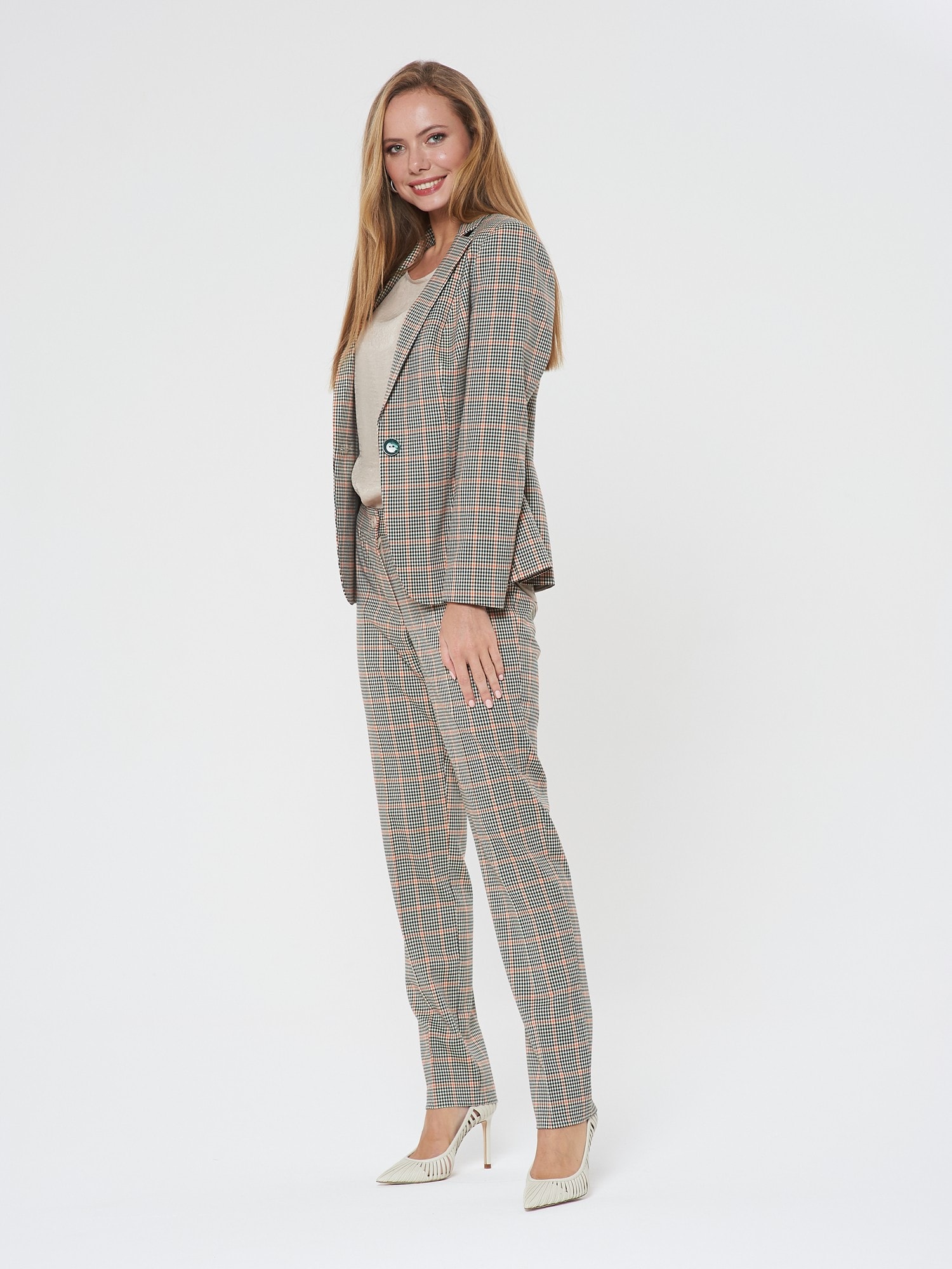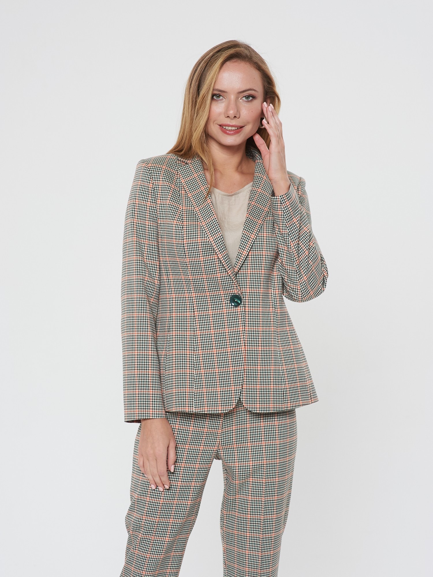 Однобортный жакет в шотландскую клетку с оранжвым оттенком. Застежка на одну пуговицу. Английский воротник. Дополните блузкой и брюками Б-117 ГЧ(В20)