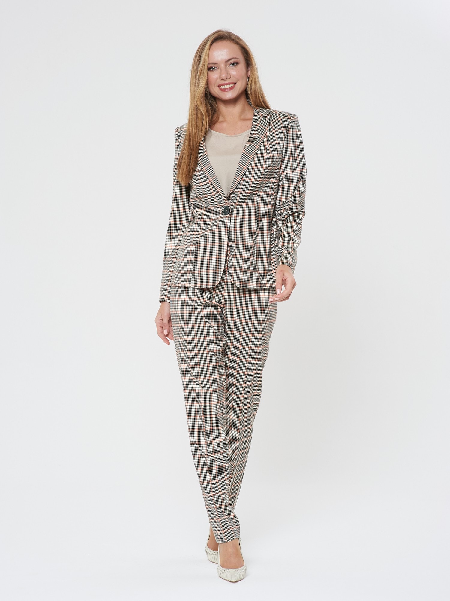 Однобортный жакет в шотландскую клетку с оранжвым оттенком. Застежка на одну пуговицу. Английский воротник. Дополните блузкой и брюками Б-117 ГЧ(В20)